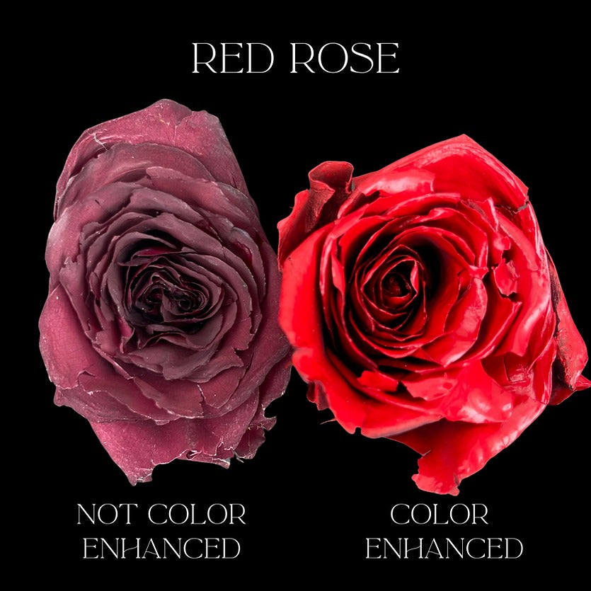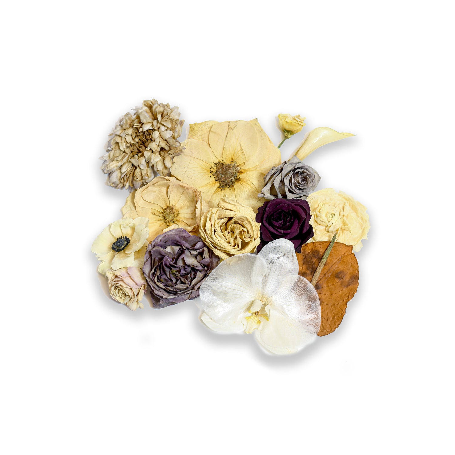 Many flowers change colors once they are dry and we understand the importance of maintaining the original beauty of your flowers, that’s why we offer color enhancing as an option. This is the process where we hand paint each flower to match the dried flowers, as close as possible to the same vibrant and stunning color as it did on your special day and brighten up some of the flowers that may look a little dull from drying.