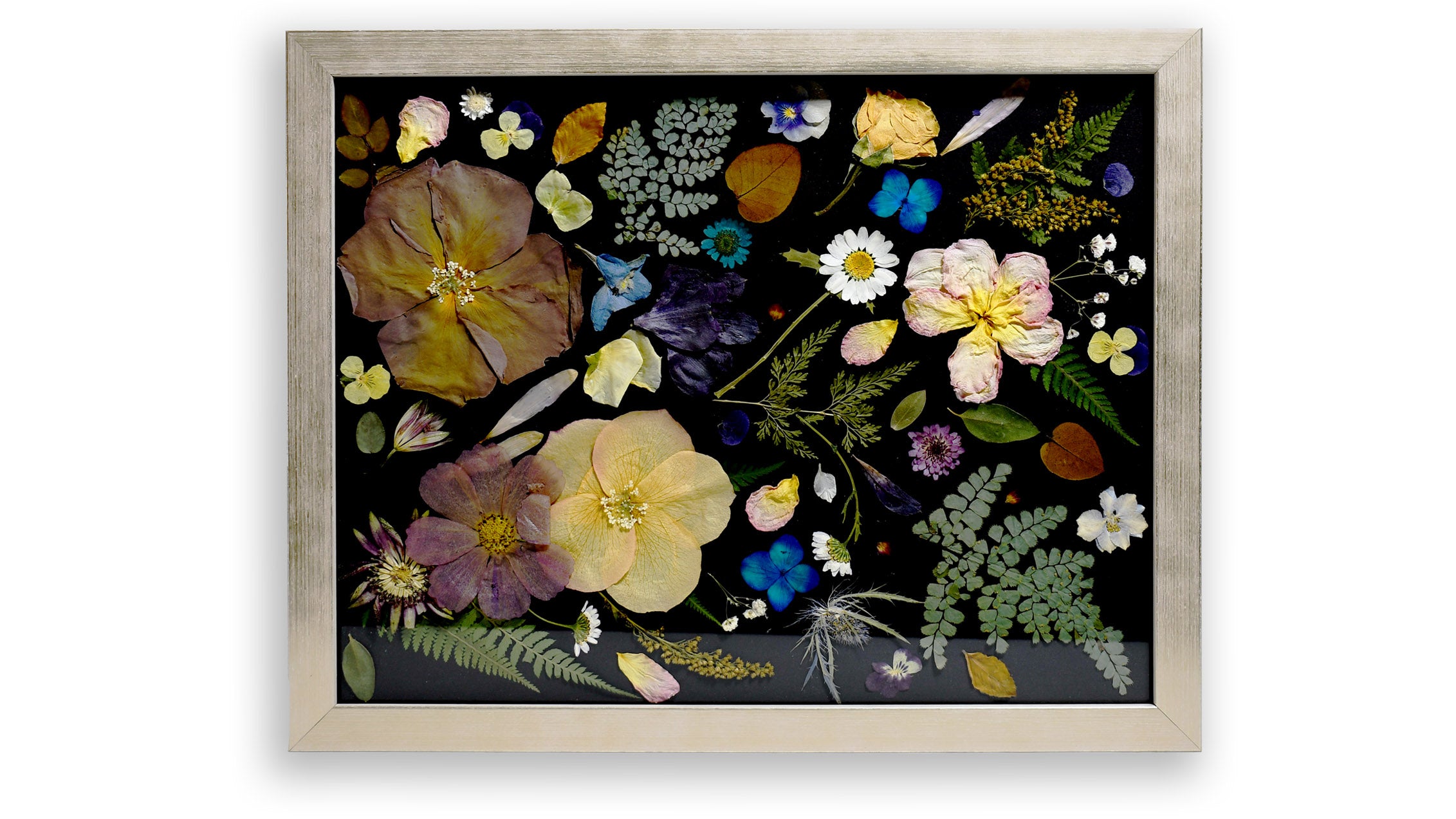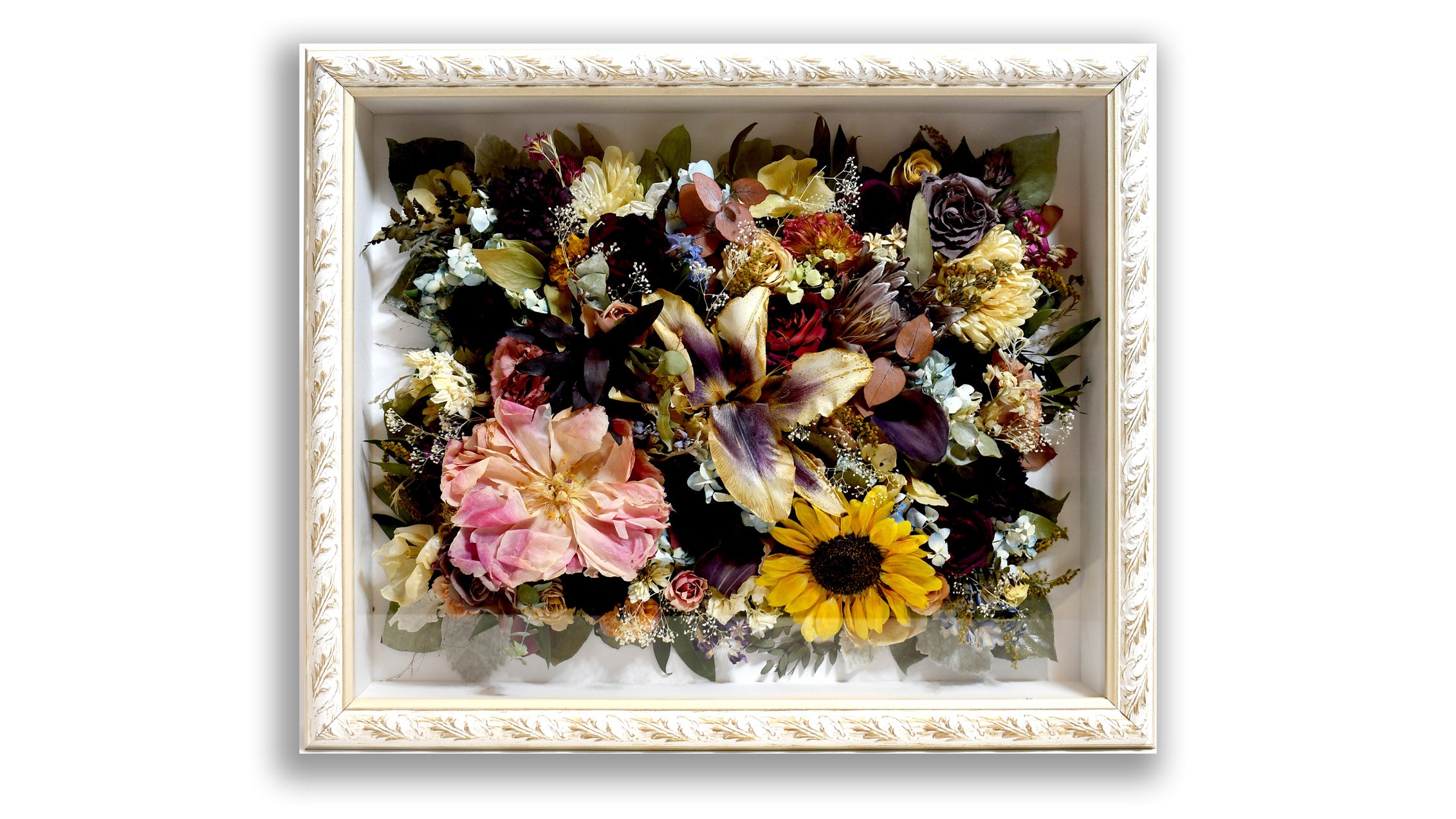 This style features flowers spread out throughout the piece showing more of the background of the keepsake.