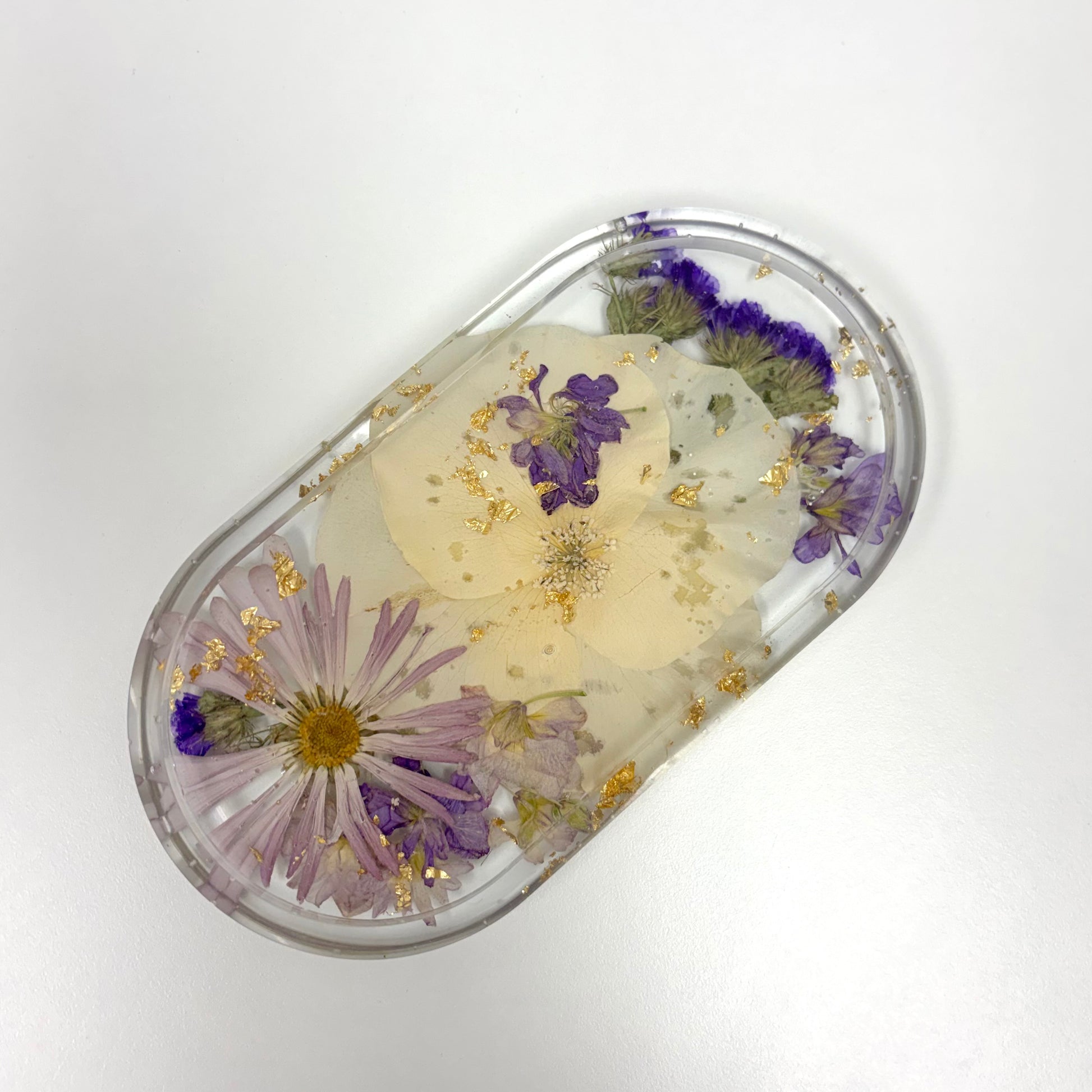 Your resin trinket tray is not just a storage solution; it serves as a beautiful display piece. Each tray is custom made, ensuring that you receive a one-of-a-kind item. We delicately press the flowers to preserve their vibrant colors and natural beauty.